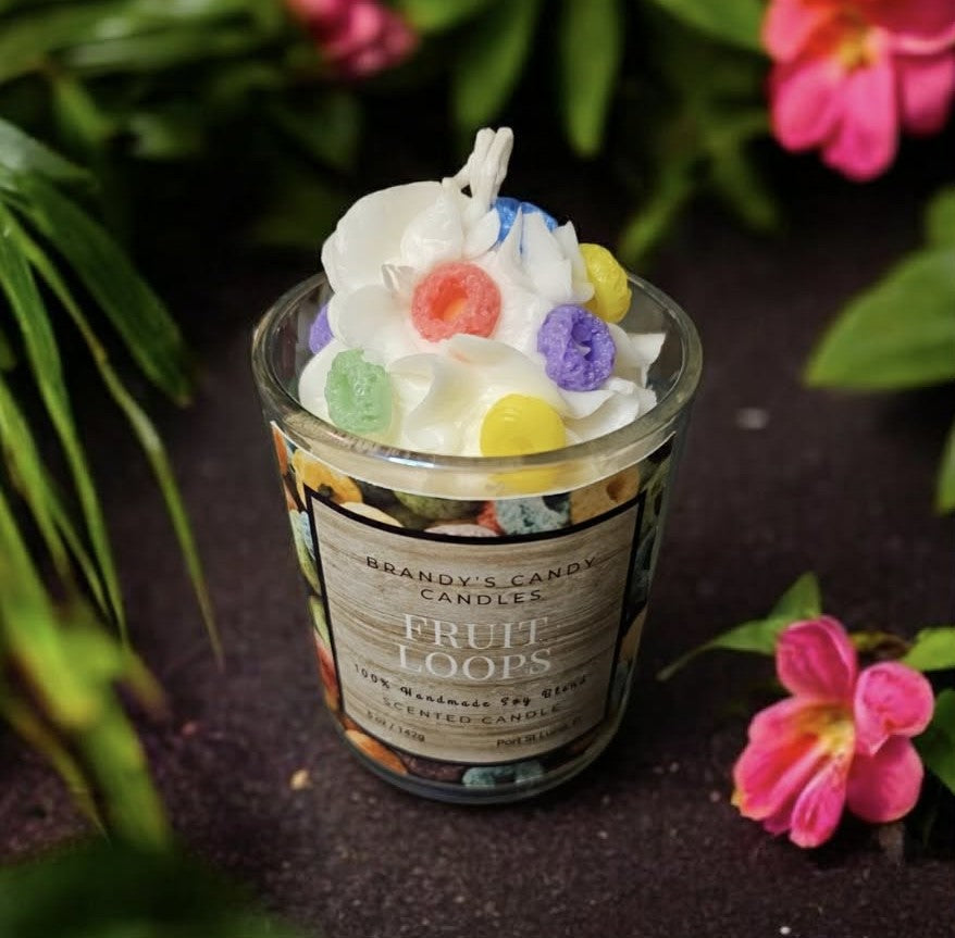 Fruit Loops candle captures the nostalgic, playful essence of the classic cereal, filling your space with a burst of fun and sweetness. This vibrant scent opens with the bright, tangy notes of citrus and juicy berries, reminiscent of the colorful, fruity pieces of the cereal. The heart reveals a medley of sweet, sugary notes, blending hints of strawberry, orange, and cherry for an irresistibly playful and candy-like aroma. The base notes of vanilla and a touch of marshmallow add a creamy, comforting finish that brings it all together. Perfect for creating a joyful and cheerful atmosphere, Fruit loops candles are ideal for anyone who loves sweet, nostalgic fragrances with a playful twist.